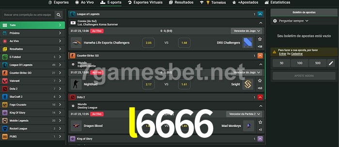O l6666 oferece uma grande seleção de opções de apostas em e-sports com probabilidades competitivas